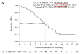 IFUM試驗招募了106名EGFR突變陽性的局部晚期或轉(zhuǎn)移性NSCLC患者,旨在評估吉非替尼作為NSCLC患者一線治療用藥時的療效,安全性和耐受性。主要終點是客觀反應(yīng)率,次要終點包括反應(yīng)持續(xù)時間、無進展生存期、總生存期以及安全性和耐受性。